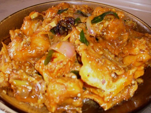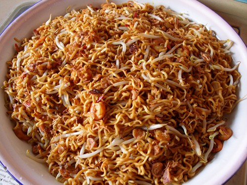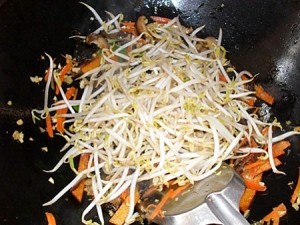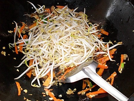 开大火再翻炒几下,给它的调味料均衡.然后,就放炸好的腐竹和冬粉下去一起炒.大约一分钟后,就可以上菜了.红罗卜丝是我炒到一半后才想到没放,后来才放的.哈哈.